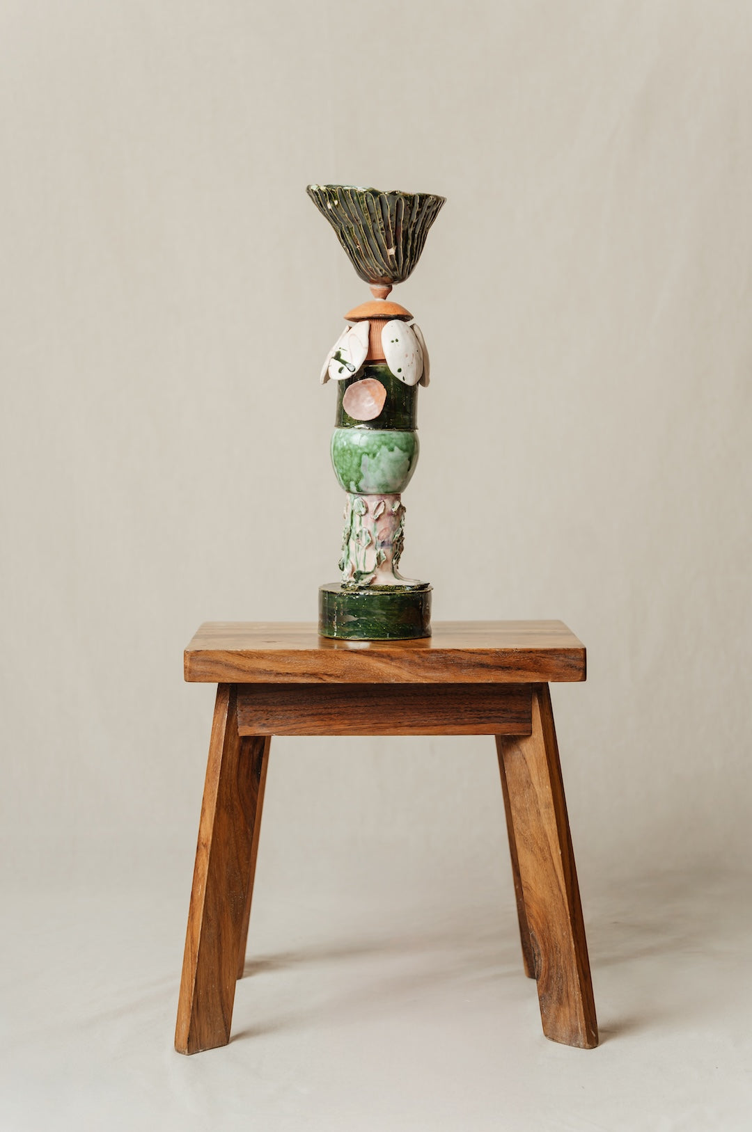 Construcción de objetos varios elaborados con pasta cerámica roja y blanca. Esmaltados y horneados en alta y baja temperatura.
