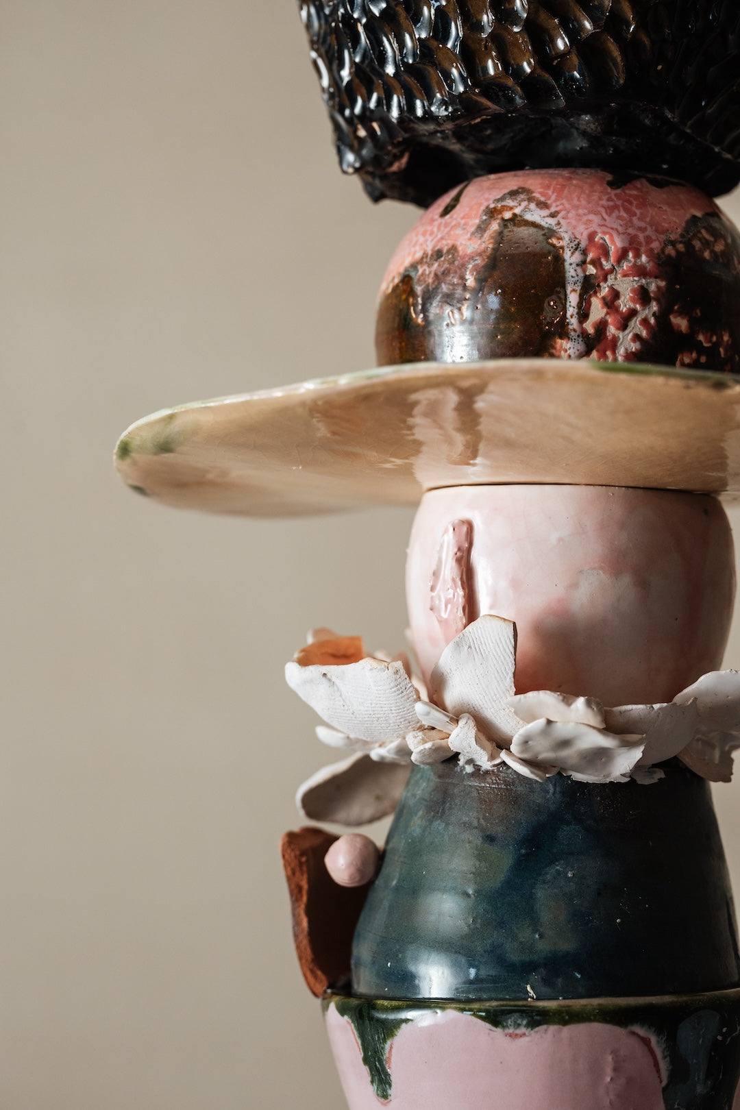 Construcción de objetos varios elaborados con pasta cerámica roja y blanca. Esmaltados y horneados en alta y baja temperatura. Base metálica