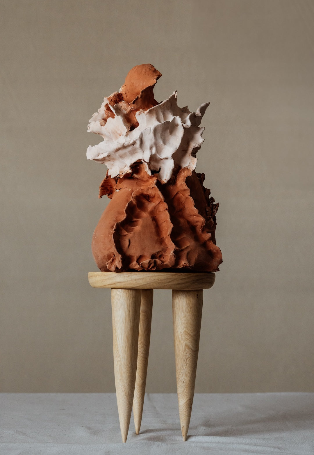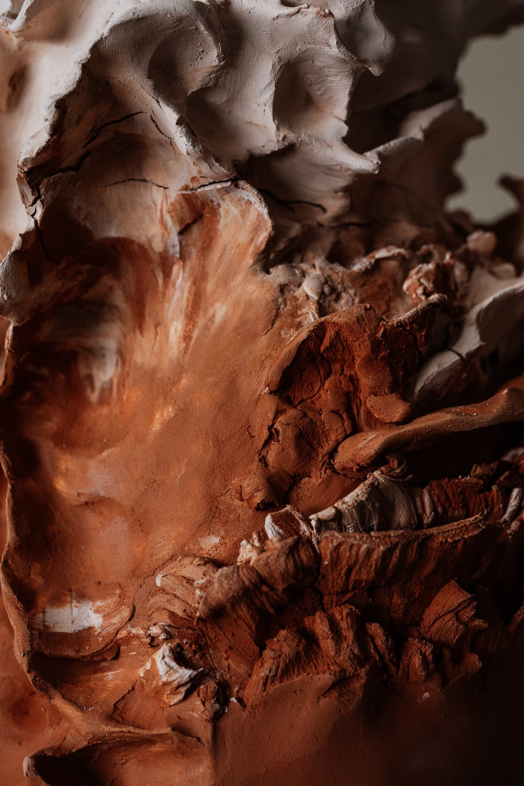 Pasta cerámica roja, pasta cerámica blanca horneada a baja temperatura.