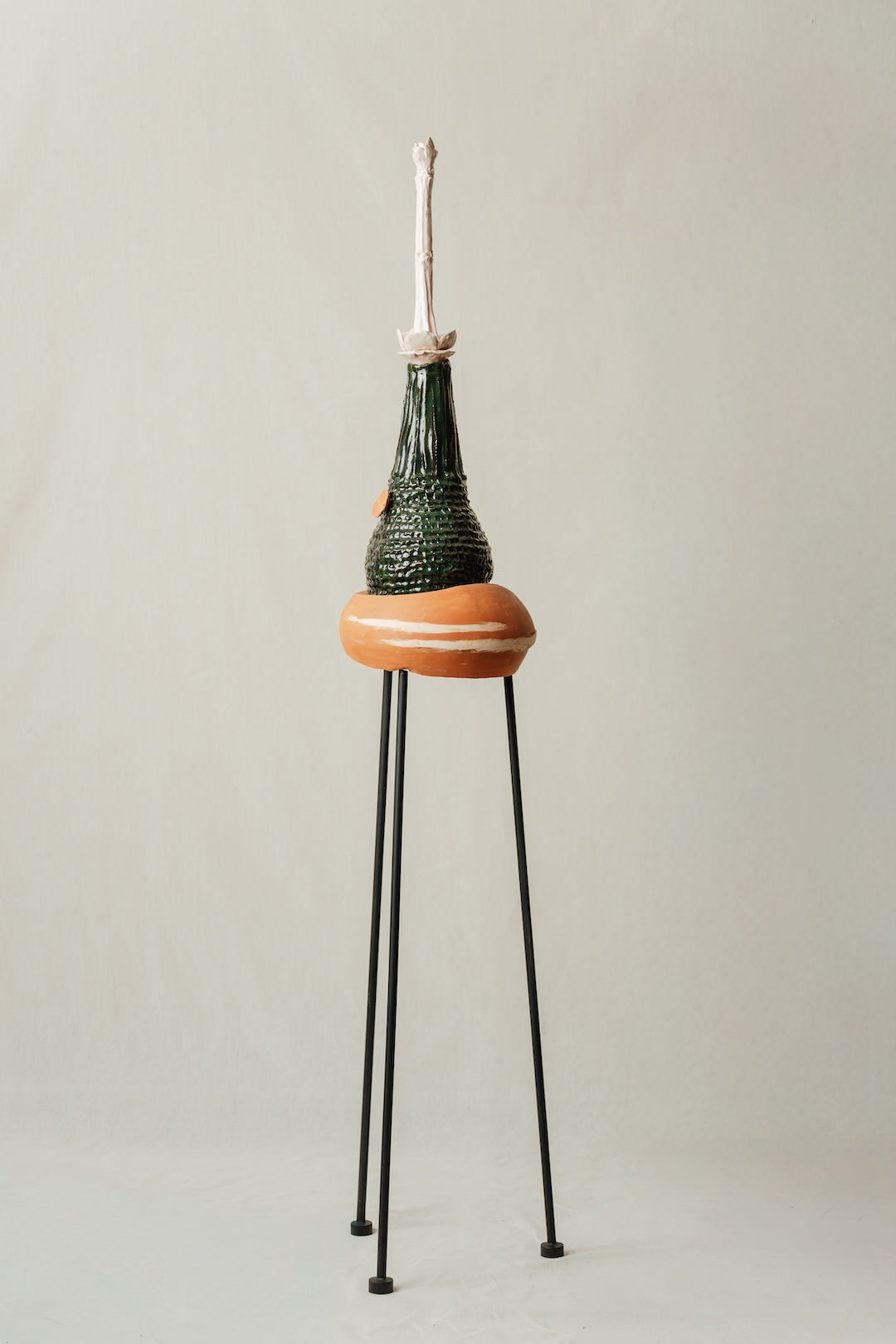 Construcción de objetos varios elaborados con pasta cerámica roja y blanca. Esmaltados y horneados en alta y baja temperatura. Base metálica