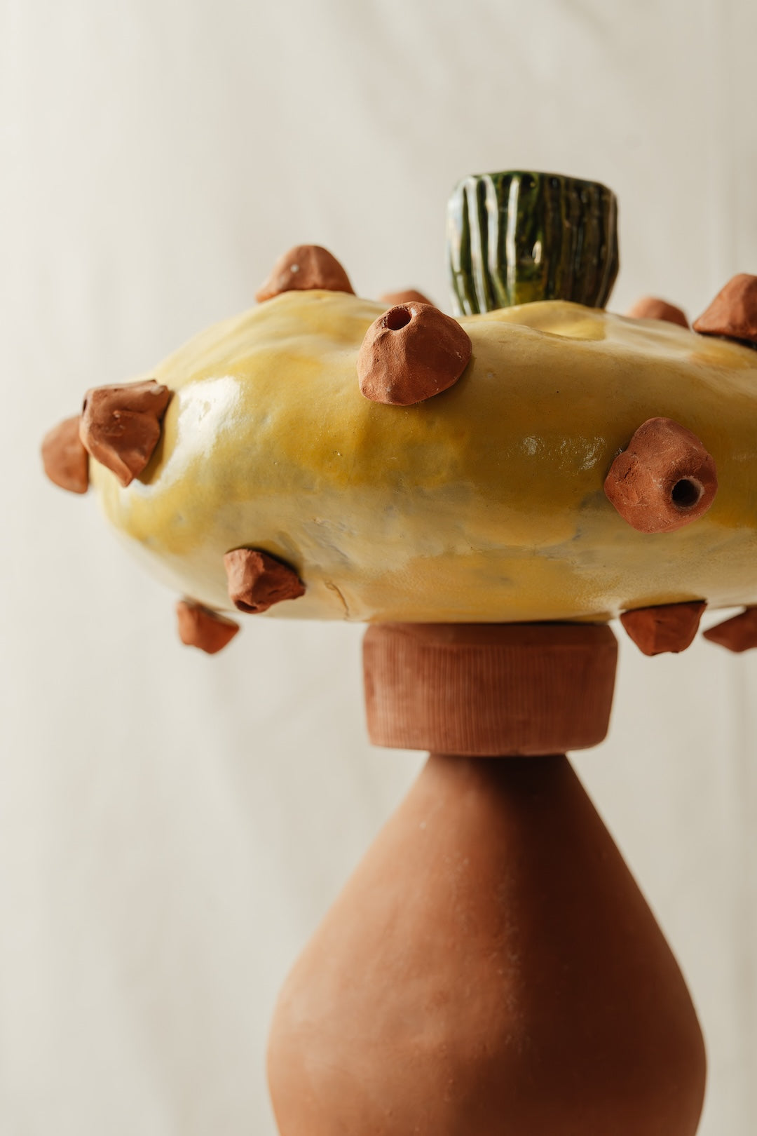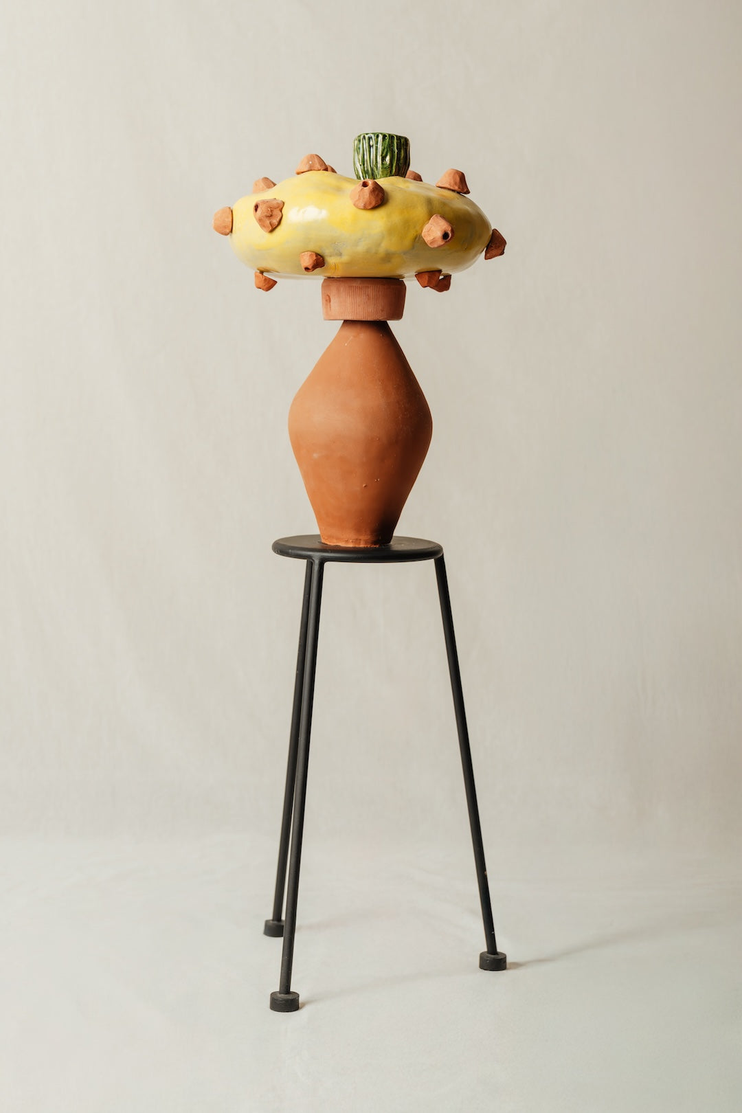 Construcción de objetos varios elaborados con pasta cerámica roja y blanca. Esmaltados y horneados en alta y baja temperatura. Base metálica