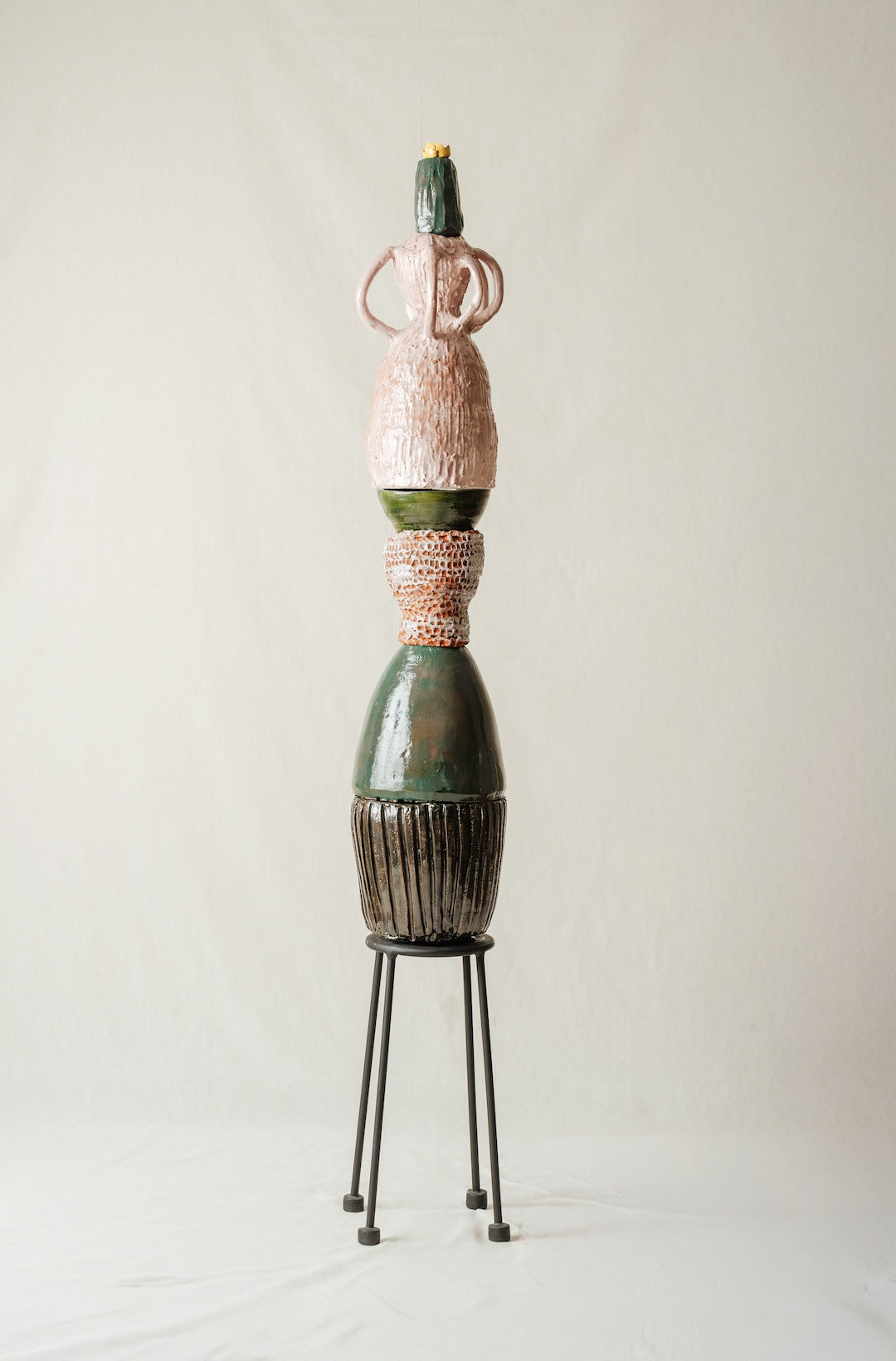 Construcción de objetos varios elaborados con pasta cerámica roja y blanca. Esmaltados y horneados en alta y baja temperatura. Base metálica